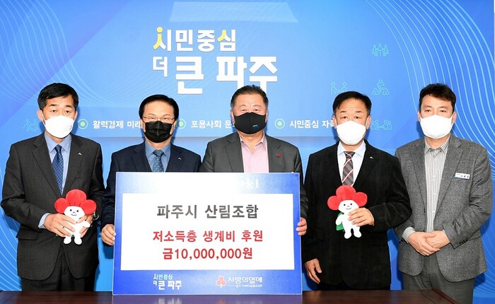 김경일 파주시장은 “지역 복지 발전을 위해 매년 앞장서서 기부를 해주시는 파주시산림조합에 감사드리며, 후원금은 지역 내 저소득층을 위해 소중하게 사용될 수 있도록 하겠다”고 전했다.