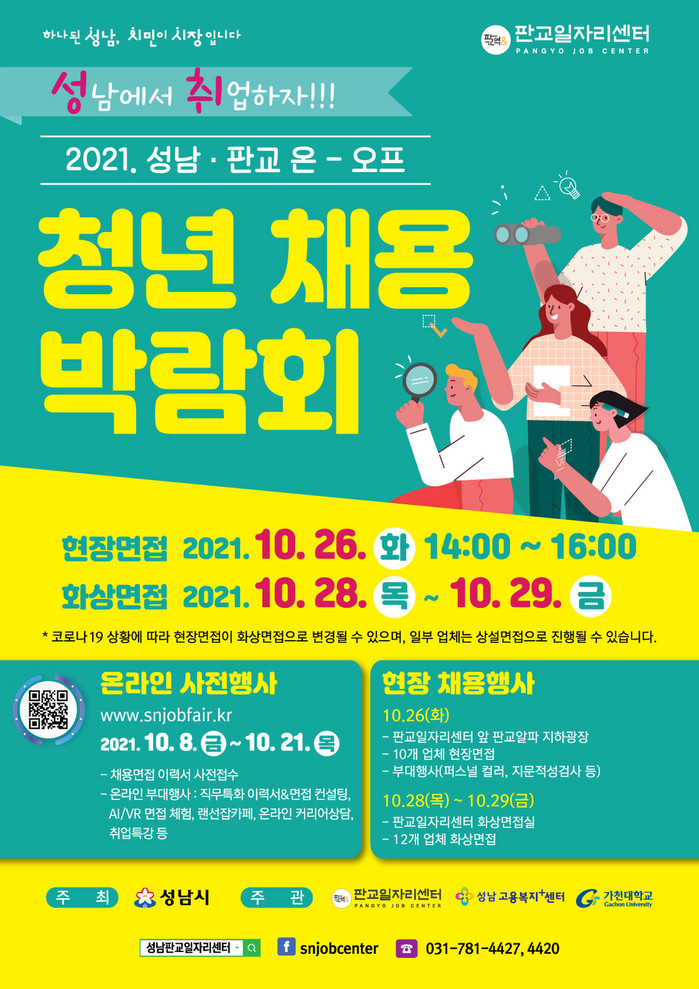 ‘성남에서 취업하자’를 구호로 하는 이번 행사는 코로나19 장기화로 가중된 청년층의 취업난을 해소하고, 기업의 청년 고용을 촉진하기 위해 열린다.