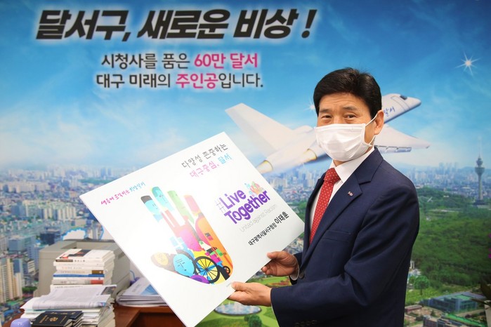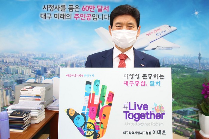 [로컬세계 박세환 기자]대구 달서구는 지난 2일 이태훈 구청장이 코로나19의 장기화로 심해지고 있는 인종차별에 반대하는 ‘리브투게더’ 캠페인에 동참했다고 5일 밝혔다.