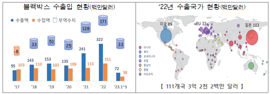 지난해 자동차 블랙박스 수출액이 전년대비 전년대비 33.7% 늘어난 3억2200만 달러로 역대 최대 실적을 기록했다.