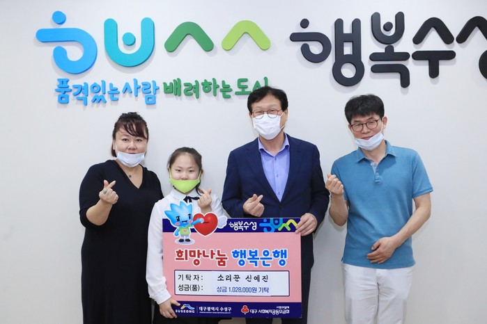 [로컬세계 박세환 기자]대구 수성구는 지난 27일 소리꾼 신예진(만11세)가 수성구청을 방문해 저소득가정 아동을 위해 써달라며 100만원 상당의 후원금을 전달했다고 28일 밝혔다.