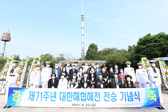 대한해협해전은 6·25전쟁 발발 직후인 1950년 6월 26일 새벽 해군 최초의 전투함인 백두산함(PC-701)이 부산 앞바다에서 특수부대원 600여 명을 태우고 침투하던 북한 무장수송선을 치열한 교전 끝에 격침시킨 6ㆍ25전쟁 최초의 해전이다.이번 행사에는 코로나19 상황을 고려해 참전용사와 유가족, 최성목(소장) 해군작전사령부 부사령관 등 주요 지휘관 및 대표장병 등 60여 명이 참석했으며, 해병대 대표로는 김계환(소장 진급 예정) 해병대 1사단장이, 주한미군 대표로는 마이클 도넬리(준장, Michael Donnelly) 주한미해군사령관이 참석해 대한해협해전 승전의 의미를 더했다.