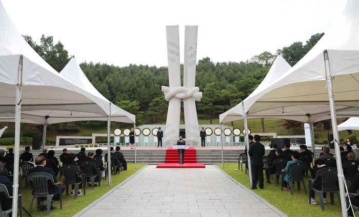 이번 추념식은 코로나19 예방을 위해 전년과 같이 규모를 축소해 기관단체장, 국가유공자 및 유가족 등 150여명만 참석했으며, 생활 속 거리두기를 준수하며 경건한 분위기 속에서 정각 10시 전국적으로 울리는 사이렌 취명에 맞춰 1분간 묵념을 올린 뒤 헌화와 분향, 추념사, 추모헌시 낭송, 현충일 노래 제창 순으로 진행되었다.
