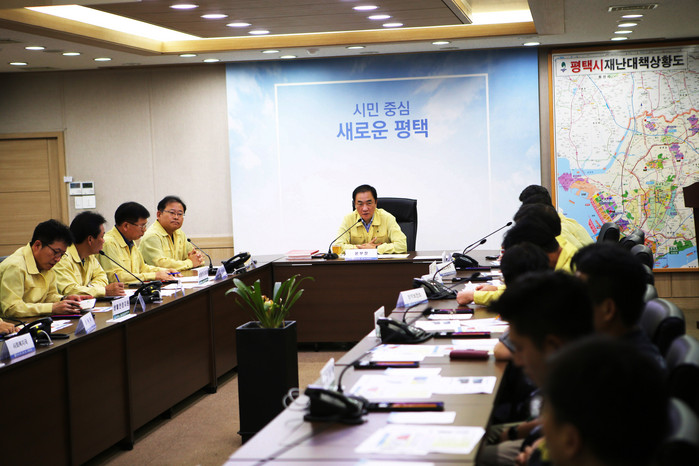 [로컬세계 고용주 기자]경기 평택시가 제13호 태풍 ‘링링’ 북상에 따른 비상체계를 유지하고 있는 가운데 7일 오전 6시에 정장선 평택시장 주재로 긴급 대책 비상 회의를 개최했다.