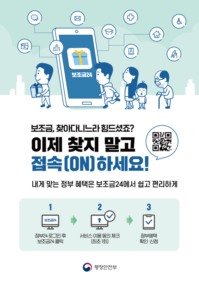 온라인 이용은 보조금24 홈페이지 또는 모바일을 통해 회원가입 후 이용동의 절차를 거치면 본인에게 맞는 정부혜택을 한눈에 확인하고 신청할 수 있다.
