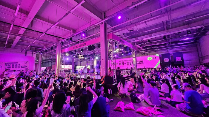 ▲유쓰페에서 학생들이 아티스트의 공연을 감상하고 있다. |