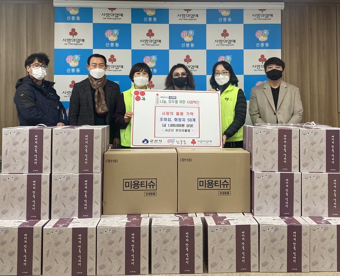 [로컬세계 양해수 기자]전북 군산시 신풍동은 서군산 로타리클럽(회장 최영숙)가 다가오는 설명절을 맞아 저소득 취약계층 50세대를 후원하기 위해 100만원 상당의 김과 화장지를 기탁했다고 19일 밝혔다.