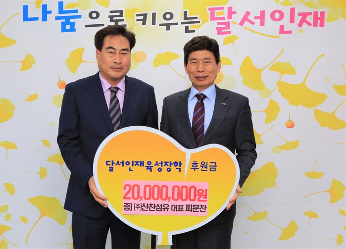 (재)달서인재육성장학재단 이사장 이태훈 달서구청장은 “지역사회 기부문화 확산에 동참해 준데 감사의 뜻을 전하며, 장학기금은 우수한 지역인재 육성을 위해 소중하게 사용하겠다”고 말했다.
