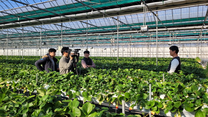 ▲ 천적 농법에 관해 소개 중인 천적 활용 딸기 농가 |