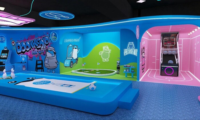 이번 두껍상회 강남은 기존 ‘어른이 문방구’ 콘셉트 아래 진행됐던 굿즈와 포토 체험 중심에서 ‘어른이 놀이터’로 활동성이 강화된 체험형 콘텐츠와 다양한 즐길거리로 차별화했다. 대중화된 스포츠를 적용한 골프 퍼팅 게임, 고민거리를 날려버리는 스트레스 샌드백, 어린시절 추억을 소환하는 레트로 게임과 두꺼비 잡기를 비롯해 에어하키, 풋 볼링, 농구, 룰렛 등을 즐길 수 있다.