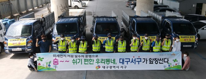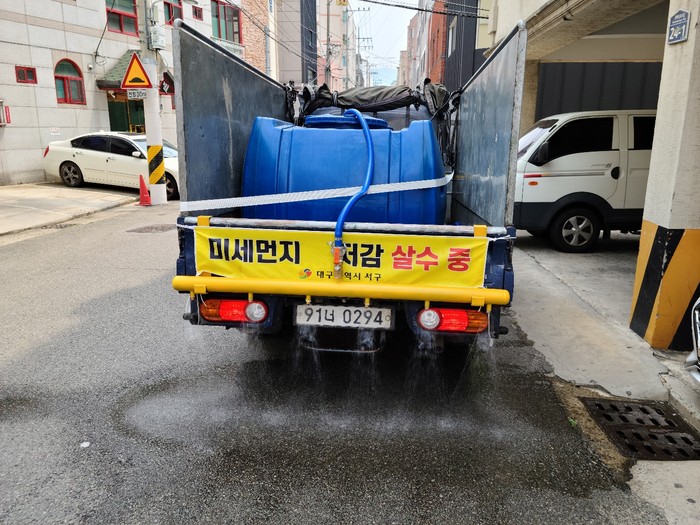 [로컬세계 박세환 기자]대구 서구는 이달부터 오는 11월까지 초미세먼지(PM 2.5) 나쁨 이상 발령시 관내 이면도로 및 주요 간선도로 120.5km에 걸쳐 살수차량 11대를 동시에 운행한다고 7일 밝혔다.