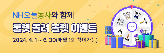 농협중앙회(회장 강호동)의 'NH오늘농사'가 1일부터 6월 30일까지 매월 'NH오늘농사와 함께 룰렛 돌려 볼렛' 이벤트를 실시한다.
