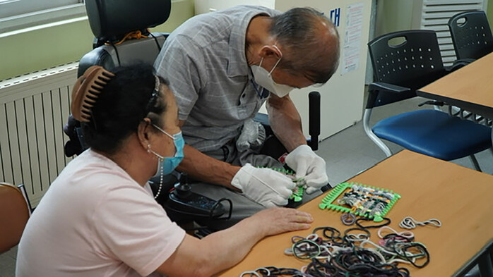 ▲ 성남시 ‘찾아가는 시민환경교실’ 양말목으로 차 받침 만들기 체험활동(2022) / 성남시 제공 |