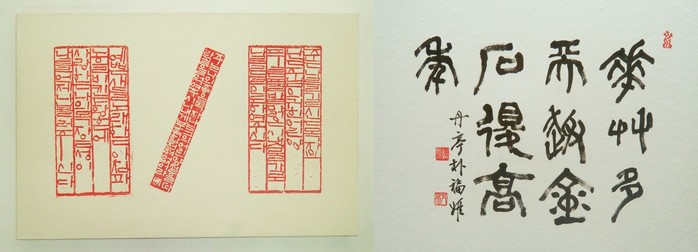 ▲서향 이경현 작가의 찬송가 570장(왼쪽)과 단정 박복희 작가의 화초금석. |