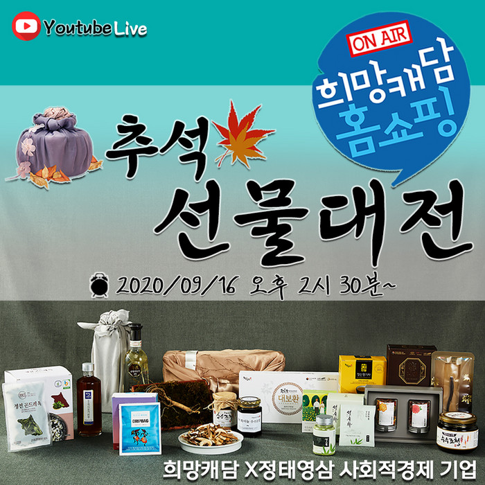 [로컬세계 박상진 기자]강원랜드 희망재단이 정태영삼 사회적경제 기업들의 새로운 판로 개척을 위해 16일 오후 2시 30분 유튜브 채널에서 ‘희망캐담 홈쇼핑 추석선물대전’을 진행한다.