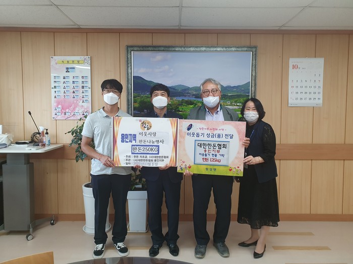 한편 (사)대한한돈협회 용인시지부는 수년째 돼지고기 기부를 이어오며 이웃사랑을 실천하고 있다. 이들은 지난해 4월 돼지고기 600kg와 손 소독제 등을 시에 기탁한 바 있으며 11월에는 원삼면에 돼지고기 100kg을 기탁했다.