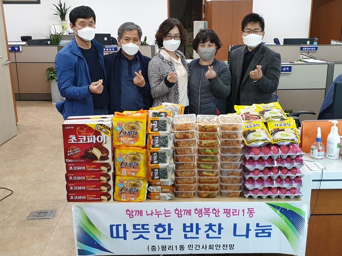 평리1동 민간사회안전망에서는 저소득 홀몸어르신 등 취약계층 세대에 밑반찬과 간식을 전달하는 함께 나누는·함께 행복한 평리1동 만들기‘따뜻한 반찬 나눔 사업’을 2017년 12월부터 매달 실시하고 있다.