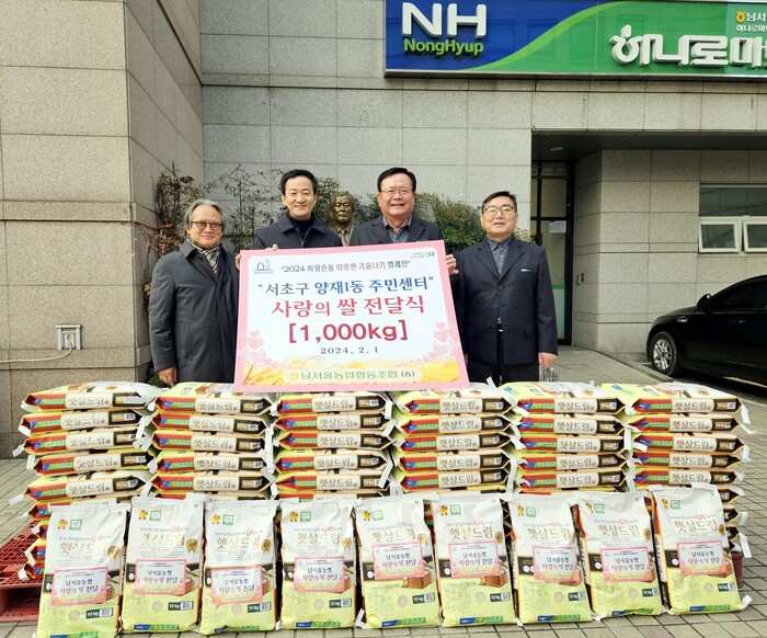 이날 전달식에서 남서울농협 안용승 조합장은 관내 서초구 양재1동 김영제 동장에게 사랑의 쌀 1000kg(10kg 100포)을 전달했다.