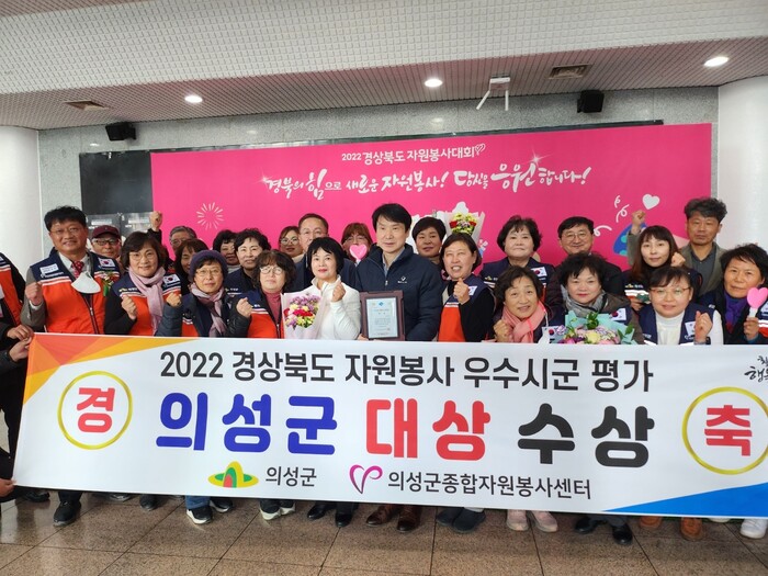 이번 대회에서 의성군은 경상북도 내 23개 시군을 대상으로 자원봉사 활동 전반을 평가하는 2022년 경상북도 자원봉사 우수 시군평가에서 대상을 수상하는 영예를 얻었다.