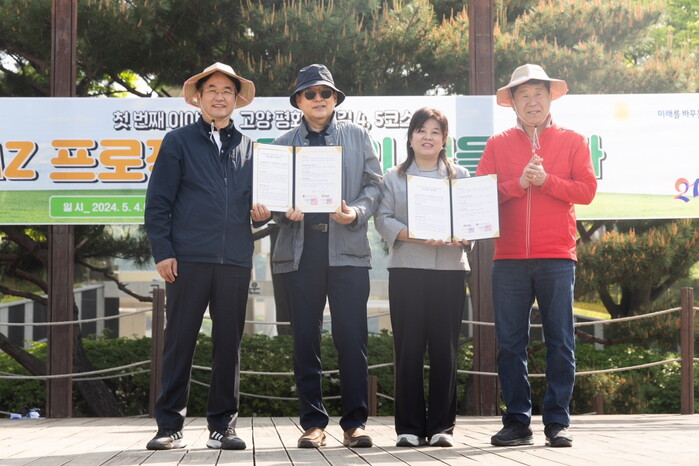 ▲ (왼쪽부터)이동환 고양특례시장, 민주평화통일자문회의 박호영 고양시협의회장, 경기서북부하나센터 김영숙 센터장, 김영식 고양특례시의장. 고양시 제공 |