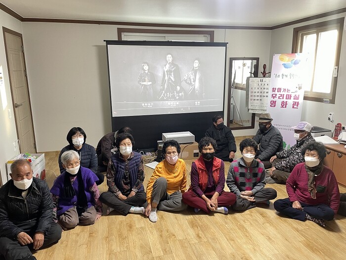 '찾아가는 우리마실 영화관'은 영화를 쉽게 접하기 어려운 어르신들에게 경로당으로 직접 찾아가 영화를 상영해 어르신들의 건전한 여가문화생활을 지원하고, 코로나19로 지친 마음을 힐링할 수 있도록 민·관이 협업해 운영하는 사업이다.
