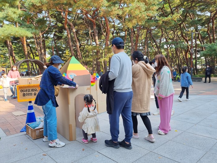 ▲ 솔밭근린공원에 조성된 팝업놀이터에서 아이들이 프로그램을 즐기고 있다. 강북구 제공 |