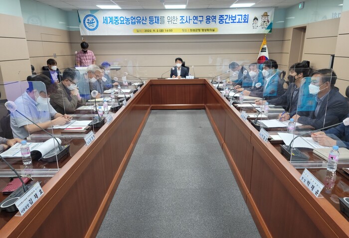 [로컬세계=박상진 기자]경북 의성군은 지난 2일 국가중요농업유산 제10호 '의성 전통수리 농업시스템'을 세계중요농업유산(GIAHS)으로 등재하기 위한 조사‧연구 용역 중간 보고 및 전문가 자문회의를 가졌다고 7일 밝혔다.