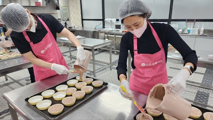 LG유플러스(대표 황현식)는 소외계층 이웃에게 따뜻한 마음을 전하기 위해 임직원이 직접 빵을 만들고 전달하는 ‘U+희망나눔 빵 만들기’ 사회공헌 활동을 전개한다고 16일 밝혔다.