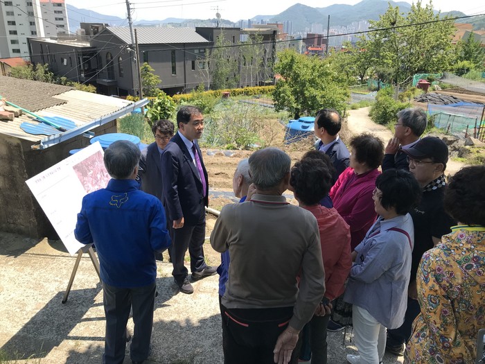 이날 허 시장은 마산합포구청장 및 관계부서장, 지역주민들과 함께 마을안길을 구석구석 걸으면서 문화3통 도시계획도로 개설에 대한 의견을 나누고 해결점을 모색하는 시간을 가졌다.