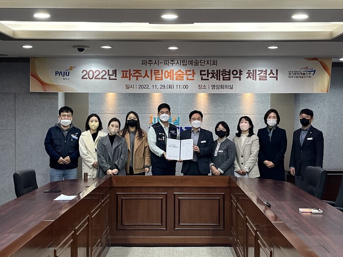 파주시립예술단지회는 지난 2020년 12월에 142개 조문의 단체교섭 요구(안)을 파주시에 제출해 그동안 32차례의 단체교섭을 거쳐 합의에 노력한 결과, 이날 전문과 113개 조문, 부칙 3개 조문으로 구성된 최종 단체협약을 맺게 됐다.