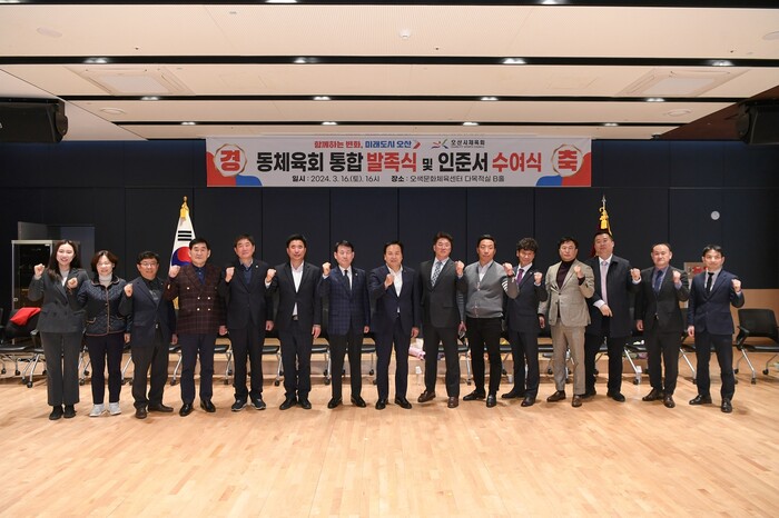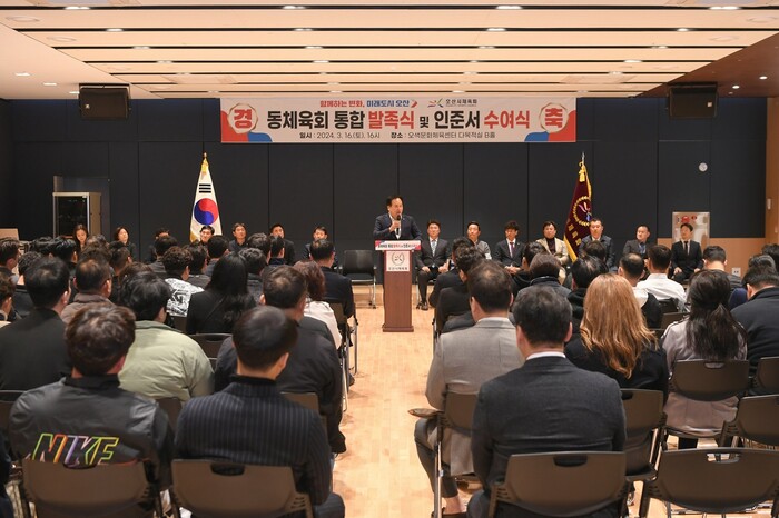 [로컬세계=김병민 기자]경기 오산시체육회는 지난 16일 오산오색문화체육센터 다목적실에서 오산시 동 체육회 통합 발족식 및 인준서 전달식을 개최했다고 19일 밝혔다.