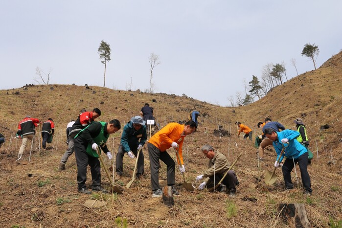 하이트진로는 지난 4일 강원도 강릉시 옥계면 남양리에서 아름다운숲 조성을 위한 식목행사를 진행했다. 이번 행사에는 하이트진로를 비롯, 하이트진로 협력사들과 아름다운가게, 평화의숲, 동부지방산림청 등이 참여했다.