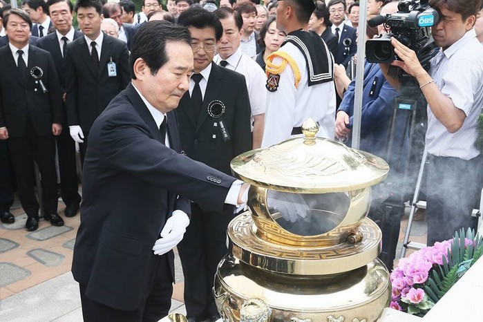 ▲정세균 국회의장이 김대중 전 대통령 7주기 추모식에서 분향을 하고 있다. 사진출처 정세균 국회의장 페이스북. |