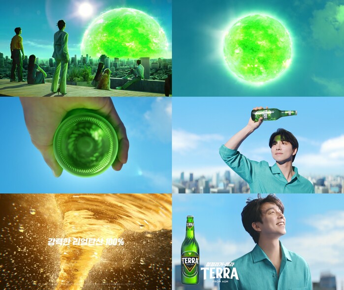 테라 광고는 그동안 드라마틱한 장면과 눈을 뗄 수 없는 비주얼로 매번 화제가 됐었다. 이번 신규 광고 역시 영화적인 상상력과 영상미로 테라의 시그니처 컬러인 ‘녹색’과 ‘청정’한 이미지를 동시에 담아내 브랜드의 핵심 가치를 전달하는 데 중점을 뒀다.