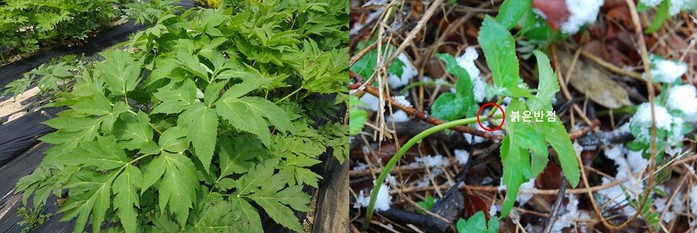 ▲왼쪽부터 약초 ‘참당귀’, 독초 ‘지리강활’ |
