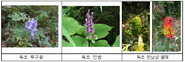 사약의 재료인 투구꽃, 진범, 천남성도 가을 산행에서 자주 만나는 독초들이다. 이들은 모습이 화려하지만, 독이 있으므로 어린 자녀들이 채취하지 않도록 해야 한다.