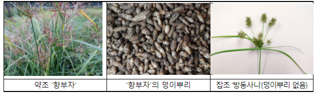 향부자는 가을에 덩이뿌리를 채취해 삶거나 쪄서 건조한 후 한약재로 이용하지만, 방동사니는 효능이 없는 일반 잡초이다.
