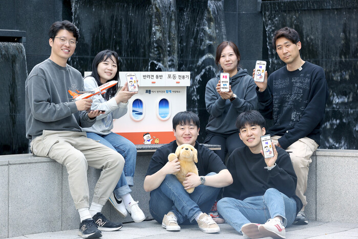 ▲LG유플러스의 반려가구 커뮤니티 플랫폼 ‘포동’이 제주항공과 함께 오는 6월 국내 유일 반려견 동반 전용기인 ‘포동 전용기’를 운항한다. 반려견 동반 여행 시장을 활성화하기 위해 대대적인 광고 캠페인도 선보인다. 사진은 LG유플러스 직원들이 반려동물 관련 커뮤니티·여행 플랫폼 ‘포동’을 소개하고 있는 모습. |