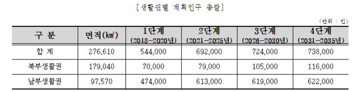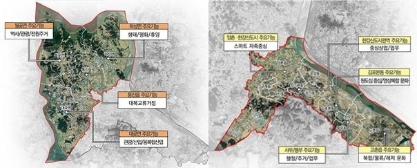 기존의 3개 생활권을 남부, 북부 두 개로 개편하여 유연한 개발전략 수립이 가능하도록 했다.