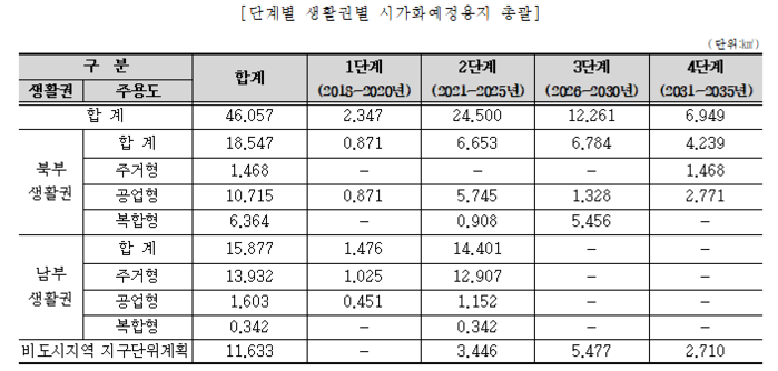 주거, 상업 등 시가화예정용지 46㎢ 확보