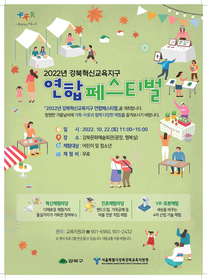 [로컬세계 = 임종환 기자]서울 강북구가 오는 22일 오전 11시부터 강북문화예술회관에서 ‘2022 강북혁신교육지구 연합페스티벌’을 개최한다.