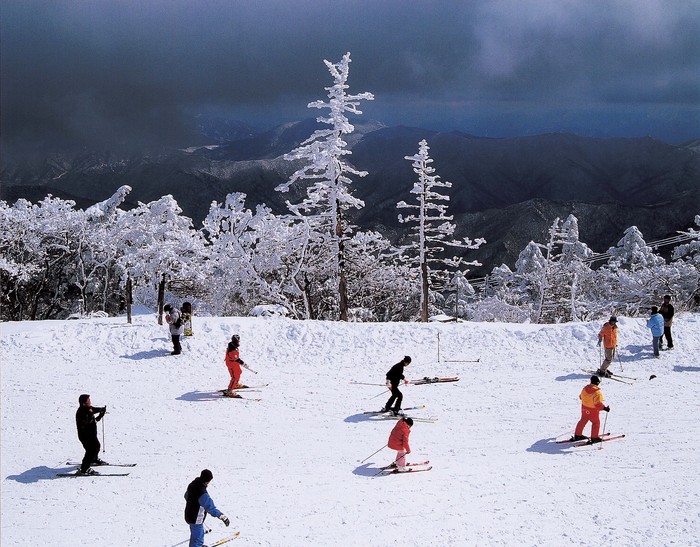 우리나라 12대 명산 중 한 곳인 덕유산은 해발 1614m의 향적봉을 주산으로 삼고 있다. 리조트에서 곤도라를 타고 올라갈 수 있는 향적봉은 덕유연봉 중에서도 최고의 절경지로 꼽힌다.