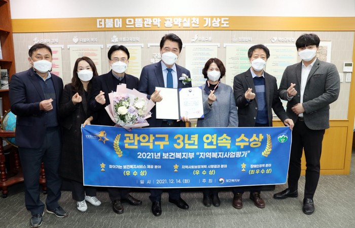 [로컬세계 임종환 기자]서울 관악구(구청장 박준희)가 보건복지부 주관 ‘2021년도 정부 복지행정 평가’에서 3년 연속 수상하는 영예를 안았다.