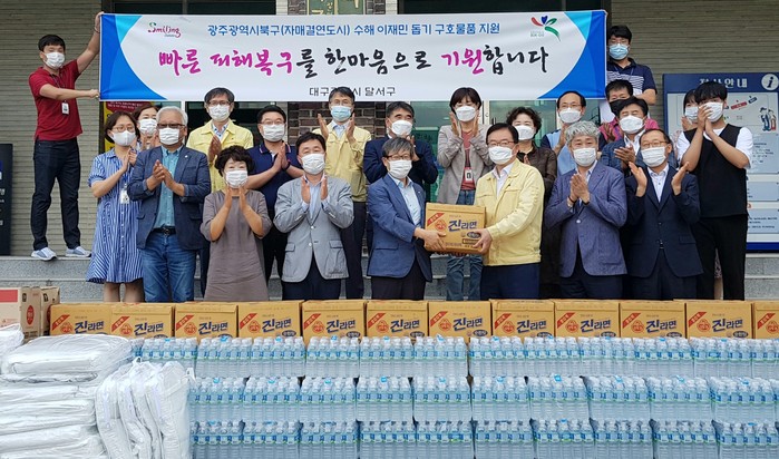 [로컬세계 박세환 기자]대구 달서구는 지난 14일 각급 단체와 함께 집중호우로 인해 큰 어려움을 겪고 있는 광주 북구(자매결연도시)를 방문해 따뜻한 마음을 담은 구호물품을 전달했다고 18일 밝혔다.