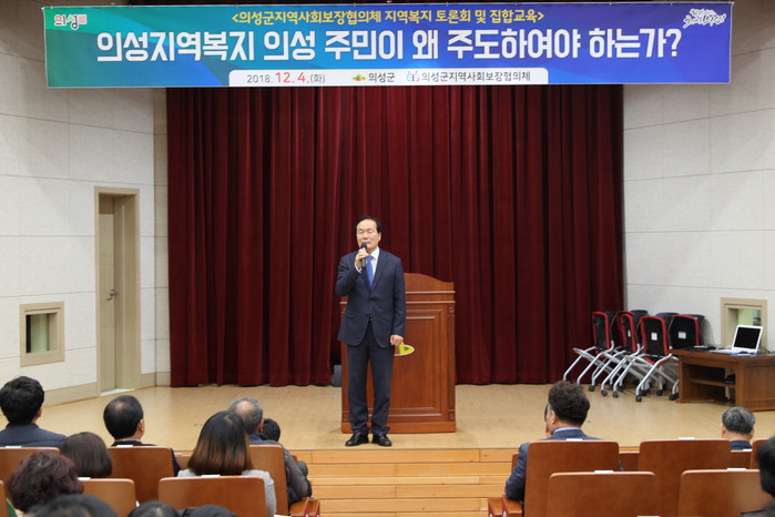 | ▲지난 4일 의성군종합복지관에서 열린 ‘2019 의성군지역사회보장협의체 지역복지 토론회 및 교육’에서 김주수 의성군수가 인사말을 하고 있다.(의성군 제공) |