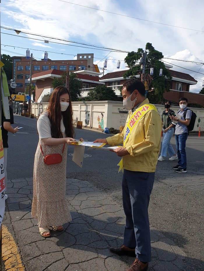 또 월명동 ‘방역지킴이’방역단은 이성당 부근 중앙사거리 일원, 초원사진관 부근 등 휴가철을 맞아 관광객이 많이 찾는 지역에서 타지역 무증상인 가족, 지인 확진자와의 접촉으로 감염돼 지역사회에 확진자가 빈번히 발생하는 상황을 강조하며 불필요한 타지역 방문과 초청자제 등 캠페인도 함께 실시했다.