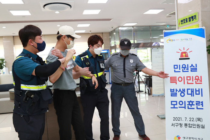 [로컬세계 박세환 기자]대구 서구청은 안전한 근무환경 조성을 위해 지난 22일 민원실에서 특이민원 발생상황을 가정한 비상대응 모의훈련을 실시했다고 26일 밝혔다.