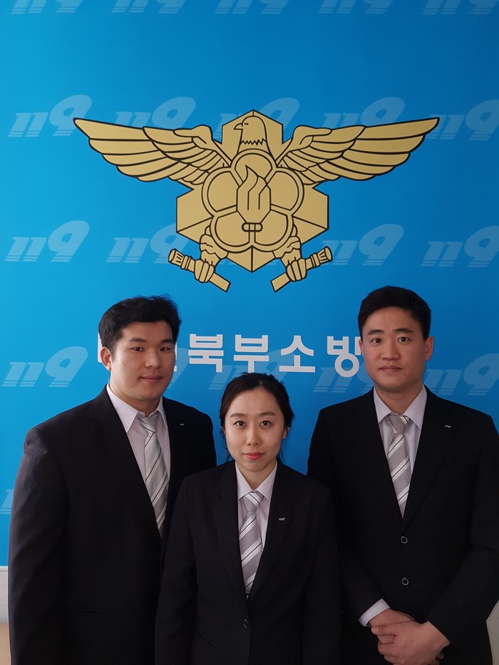 대전북부소방서 예방안전과 곽민정(여), 문준식, 심상준 소방관은 지난 4일 오후 3시경 출장 차 대전 유성구 외삼동 인근을 지나던 중 주유소에 화재가 발생한 것을 목격했다.