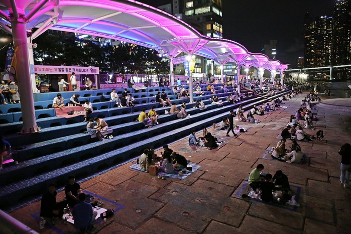 반면, 민락수변공원은 7월초부터 코로나19 예방과 확산 방지를 위해 2m 거리두기 청테이프존 560개, 안전 휀스 540m, 출입구 QR코드 인증제를 시행, 확진자 발생 시 동선 파악이 가능하도록 관리해 왔다.