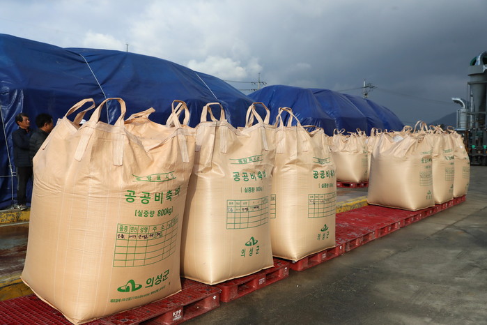 의성군은 올해 공공비축미곡 40㎏ 포대와 800㎏ 톤백 포대를 무상으로 지원했으며, 영농비 절감을 위한 톤백 수매지원 확대로 톤백 매입계획 물량이 전체 건조벼의 75%를 차지한다.
